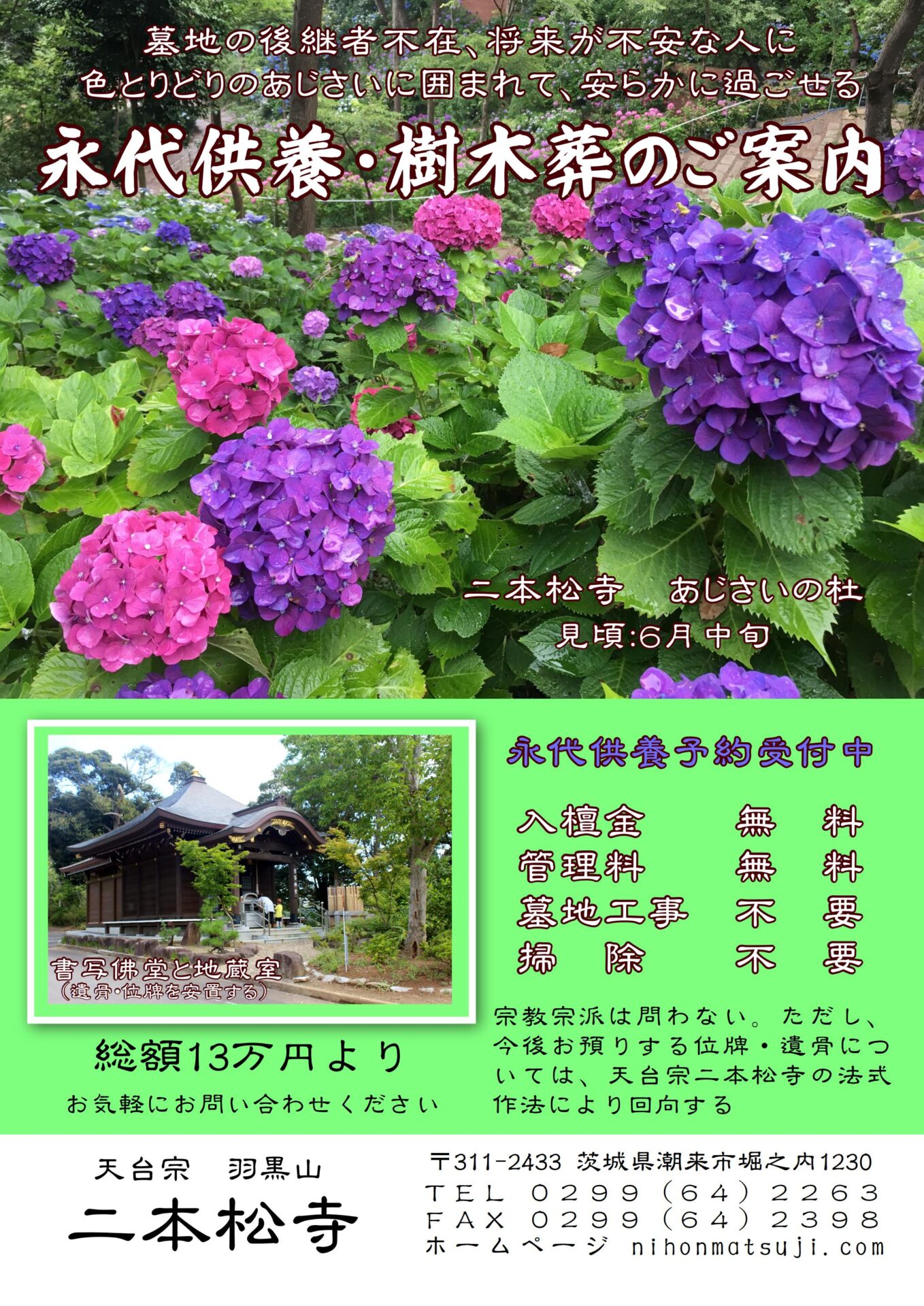 墓地の後継者不在、将来が不安な人に色とりどりのあじさいに囲まれて、安らかに過ごせます。総額13万円より。