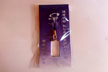 二本松寺の本尊薬師如来のクリスタルお守りです。 薬師如来はあらゆる病を治癒してくれる現世利益の仏様です。 2016年の特別御開帳記念に作りました。