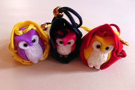 幸福の鳥・ふくろう(梟)は、「福来朗」(朗らかに福を呼び、幸せを招く)、「不苦労」(苦労をしない)、「福籠」(福がこもる)、「福老」(豊かに年をとる)と呼ばれています。 また、首がまわることから、商売繁盛・頭の回転が良いとされています。さらに、森の賢者と呼ばれ、知恵の象徴となっており、縁起が良いものとされています。