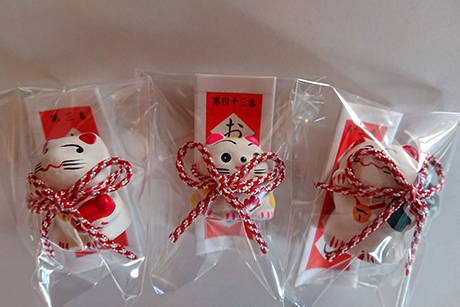 今、人気のねこの置物と一体となった招きねこみくじです。 ねこの置物はそばに置いて、癒しの存在となるでしょう。