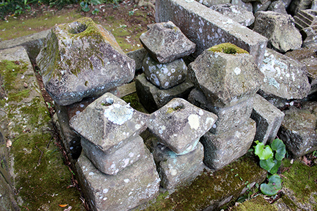 五輪塔と法篋印塔の一部で堀之内大台城発掘調査の際、本丸遺構から発見されたもので、嶋崎氏の供養塔と推定されている。 五輪塔の空・風・火輪は、室町時代の特色がみられ貴重なものである。